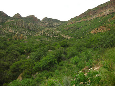 The final trip of the week took place in the Atascosa mountains, west of Rio Rico and Nogales. I was lucky enough to go into Rock Corral Canyon, a place I have heard about and wanted to explore for years! There is an incredible diversity and density of vegetation here, and plenty of water. No wonder the avian life responded in kind (eBird list). Also see Rich Hoyer's great blog post about this canyon.